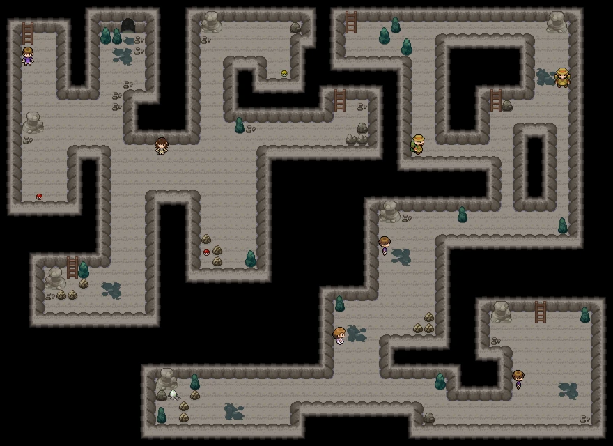 Players will want to use either the HM08 Flash or its HM Replacement Item (see List of TMs for more info) to navigate through the cavern, although it is possible without them. On B1F, behind some breakable rocks, there is an exit which leads to a small cave with an old man with an Easter egg.