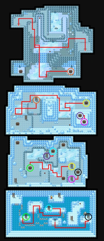 On the ice at the top of B1F is a Pokémon Nest containing a Snorunt egg. Taking the egg will lose the player 2 Karma and have a 10% chance of encountering a Level 40 Glalie.